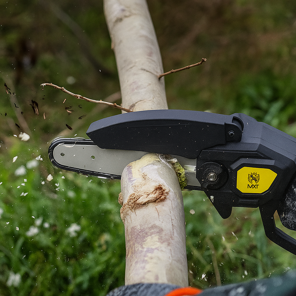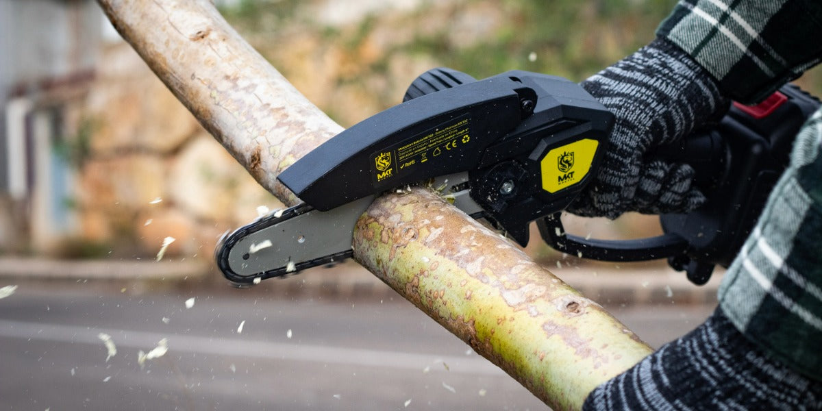 Esta mini motosierra eléctrica MAKTUL es tu aliada perfecta para cortar y podar todo tipo de troncos, ramas y maderas de forma fácil y rápida.