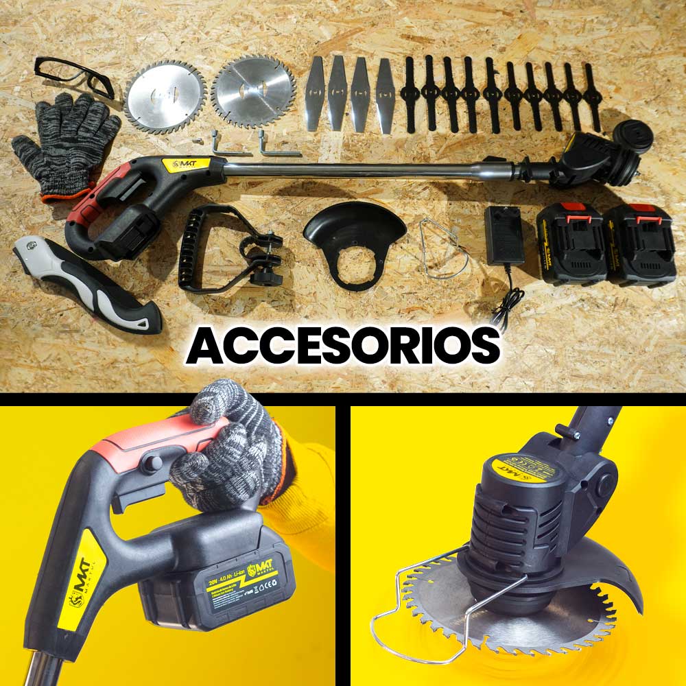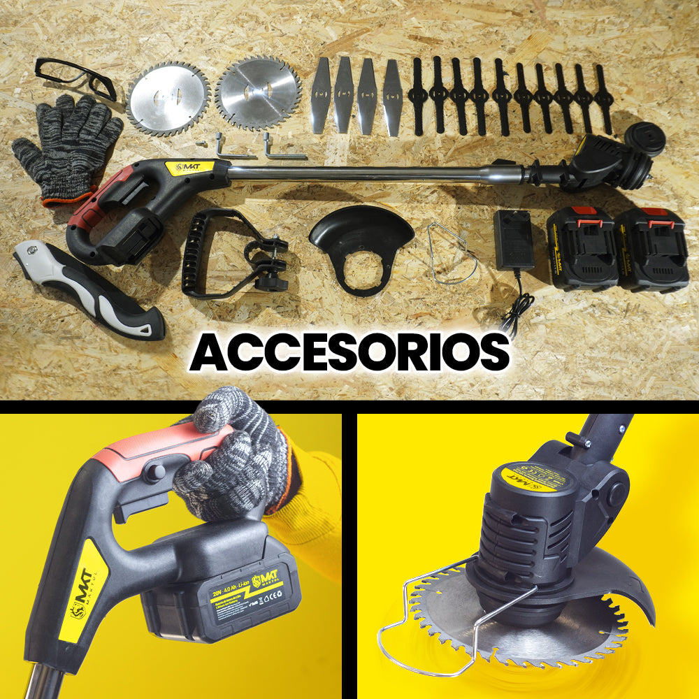 Esta desbrozadora eléctrica a batería MAKTUL es tu herramienta ideal multifunción 3 en 1 para cortar césped, bordes, arbustos y ramas altas, de forma fácil y rápida. Con el cortabordes se incluyen 2 baterías de 4.0Ah (total 8.0Ah) con cargador y todo tipo de accesorios de corte, protección y seguridad.