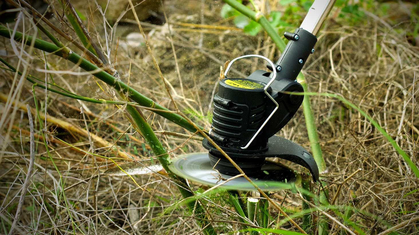 Desbrozadora con agarre ergonómico para facilitar las tareas del jardín. Cuenta con 3 tipos de cuchilla según la zona a cortar.