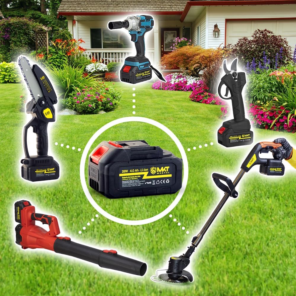 Soplador de aire potente único con 2 baterías recargables de 20V y 4000mAh (el doble que otros), sumando 8000mAh para trabajar sin preocupación. Con potencia de 450W y 28.000RPM, este soplador eléctrico a batería es ideal soplar y limpiar hojas y suciedad de manera rápida y efectiva. Además, las baterías son compatibles con la motosierra, la desbrozadora, las tijeras de podar y el taladro de impacto de MAKTUL.